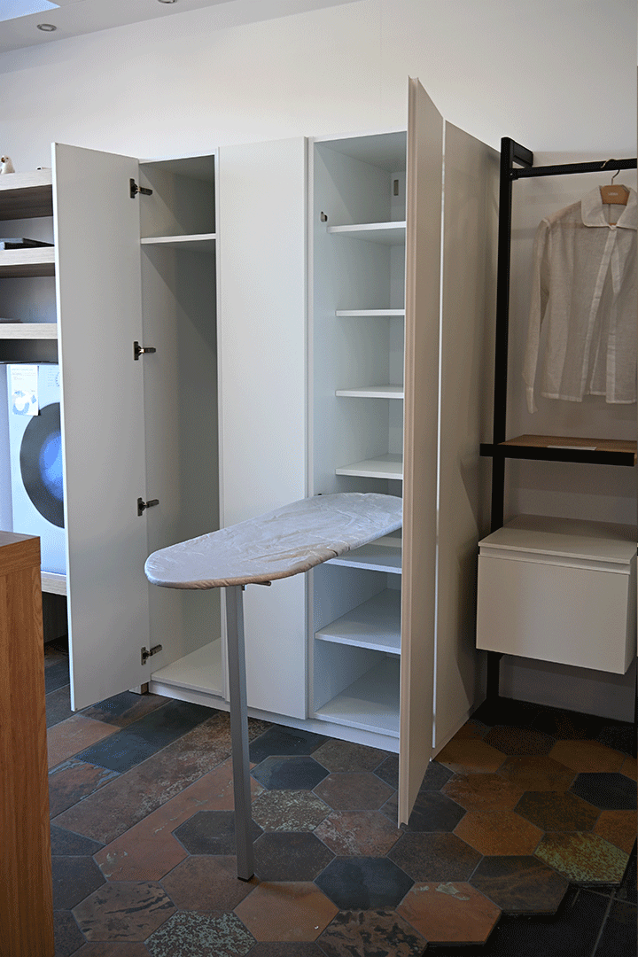 Armoire colonne avec planche à repasser blanc mat Lg 450 x Ht 1900 x Pf 650