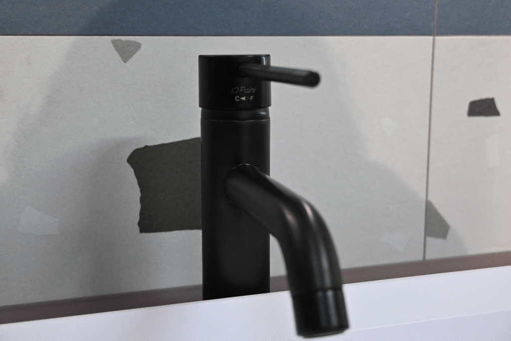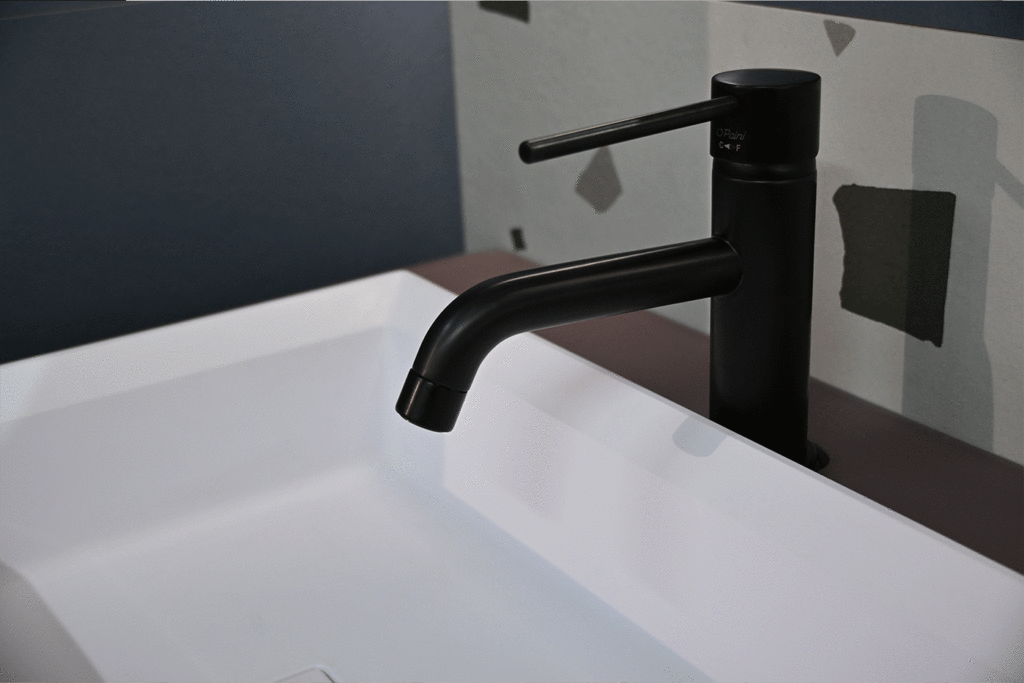 Mitigeur de lavabo COX à bec long en PVD noir brossé, au prix de 300 € au lieu de 640 € TTC