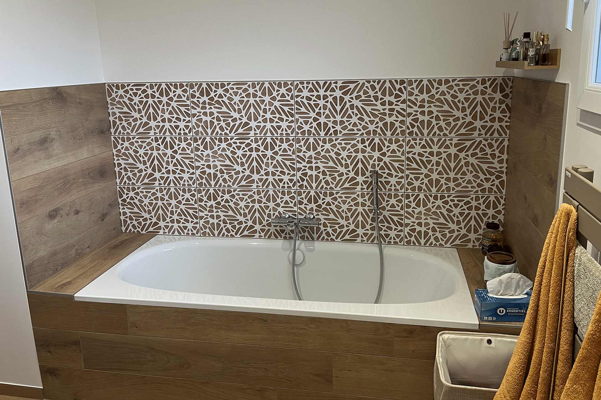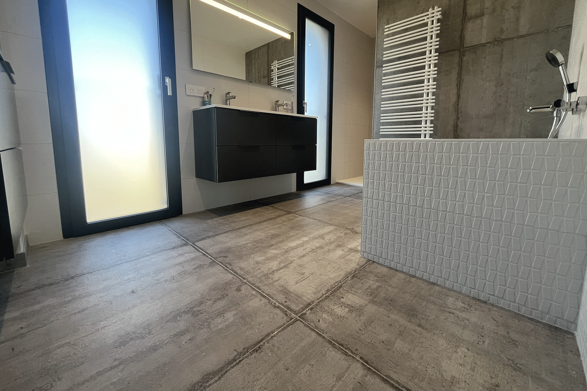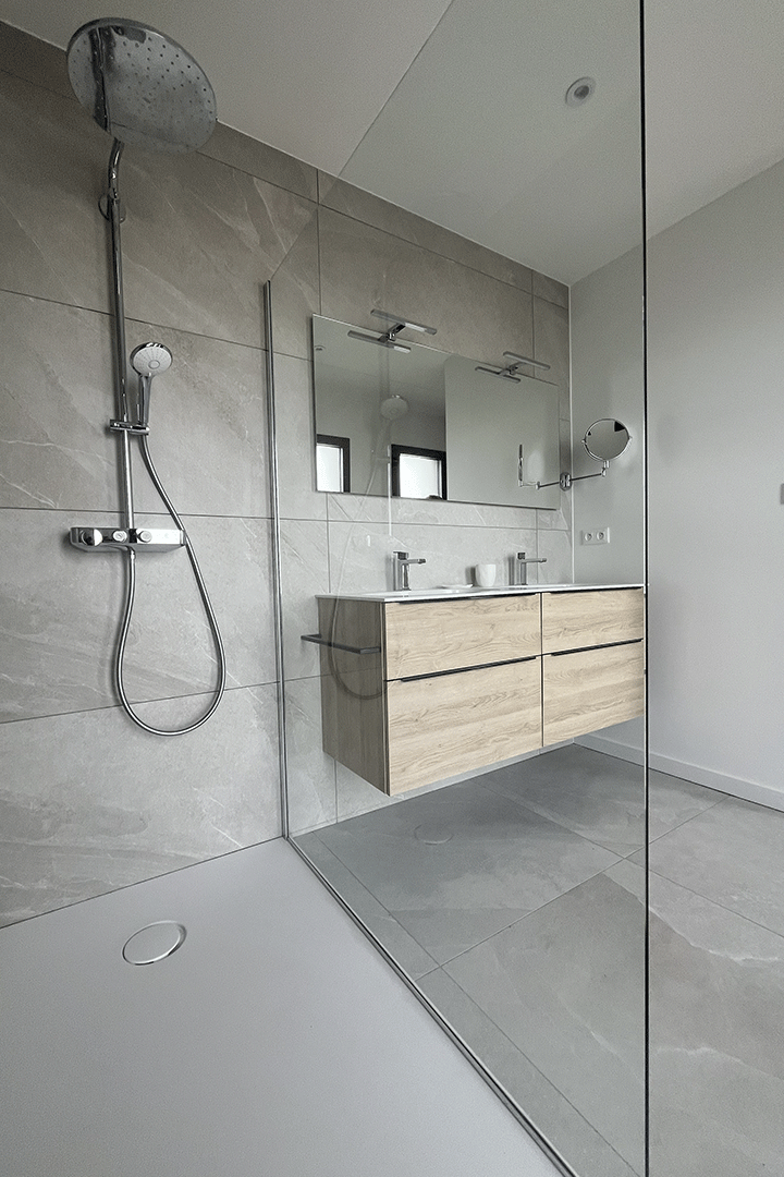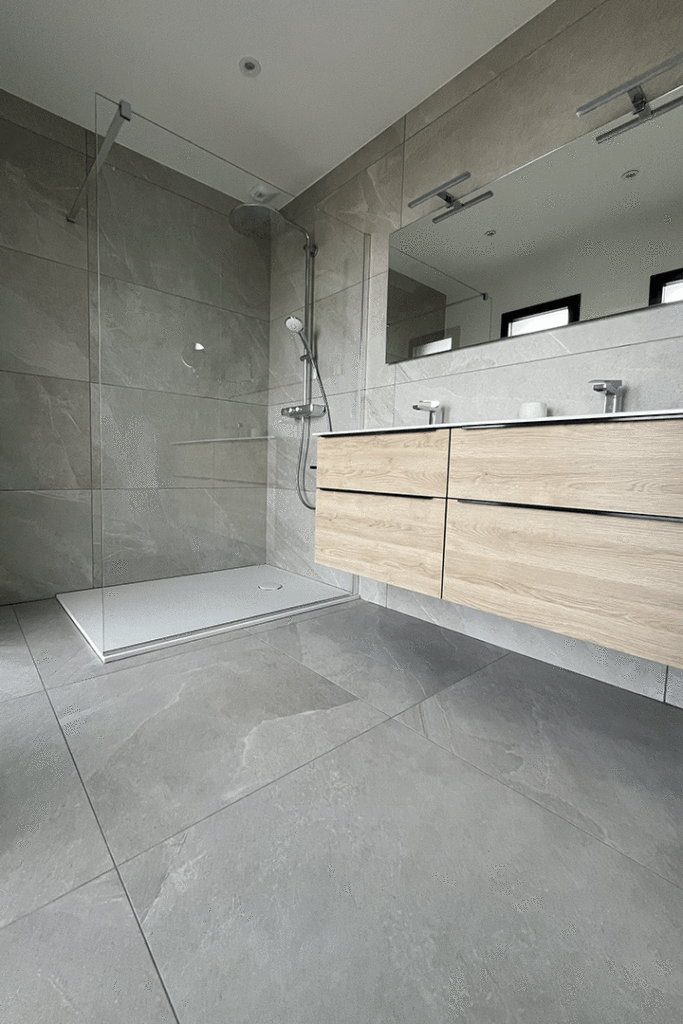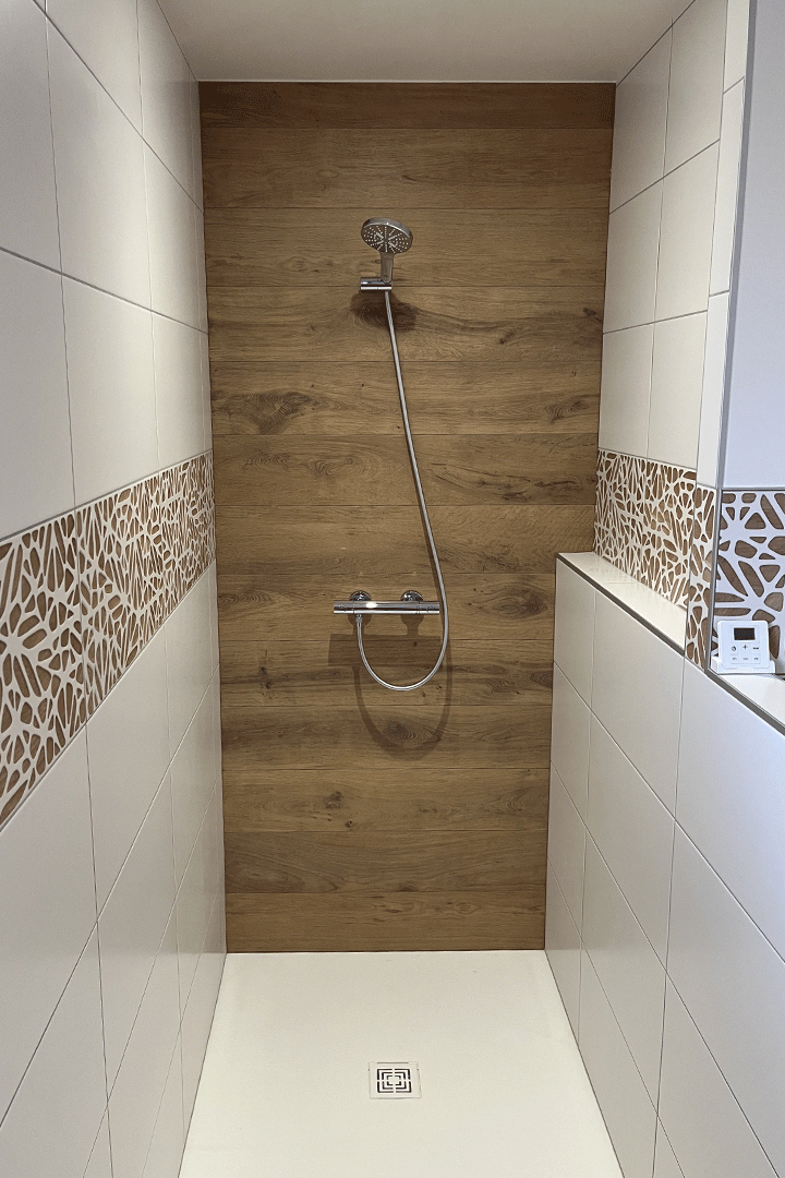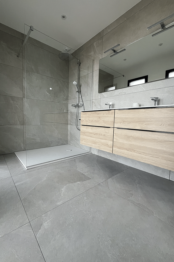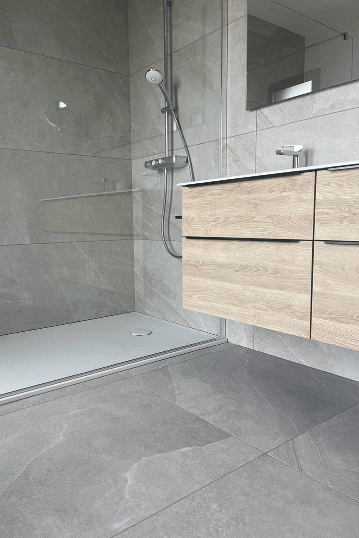 Lorsqu’il s’agit d’aménager des espaces restreints, n’hésitez pas à privilégier des carreaux de grandes dimensions. Cette stratégie permet de réduire le nombre de joints, créant ainsi une illusion visuelle de grandeur. Cette approche astucieuse maximise non seulement l’espace perçu, mais confère également une esthétique épurée et moderne à votre salle de bains, faisant preuve d’un sens aigu du design et de la fonctionnalité.