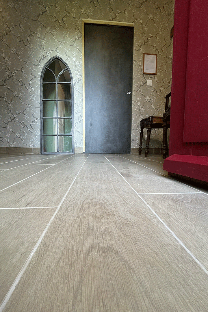 Dans la partie privative de l’étage, où l’objectif était que le personnel se sente bien et dispose d’une pièce de repos, nous avons opté pour un stratifié. Ce produit, facile à poser et associé à une sous-couche avec réduction acoustique, offre un confort esthétique à l’ambiance chaleureuse qui résiste aux passages d’intensité moyenne, à l’eau stagnante et est facile d’entretien.