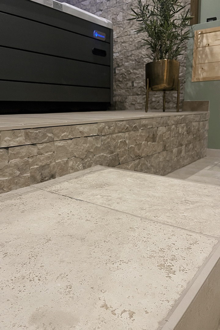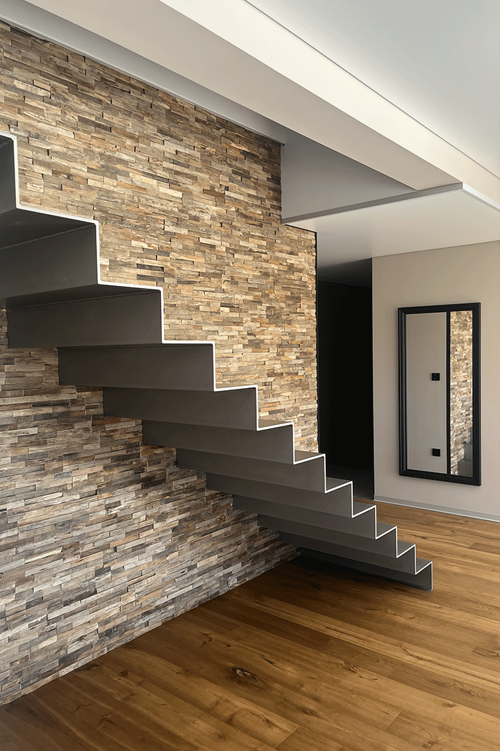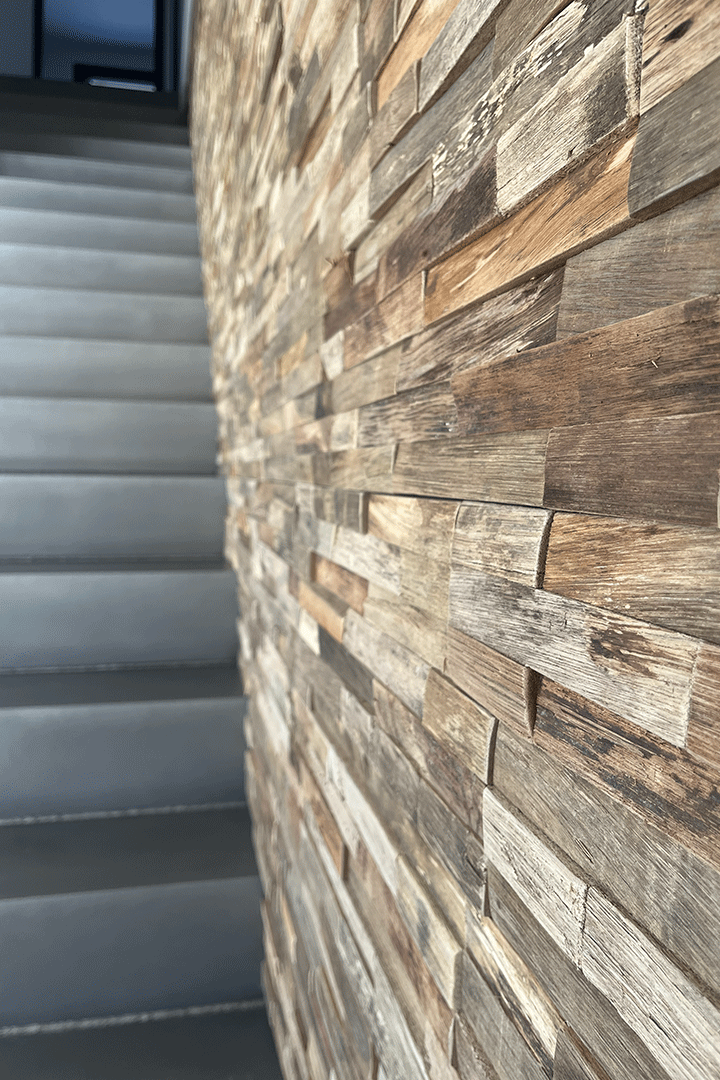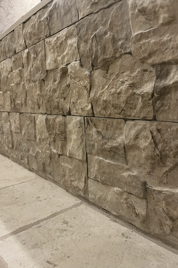 Pour l’entrée du magasin, où la décoration murale devait être à la fois attrayante et durable, nous avons opté pour des parements en pierre reconditionnée à l’effet rouille. L’intérêt principal d’utiliser du parement est d’apporter une touche d’authenticité et de caractère à l’architecture tout en assurant une excellente résistance aux intempéries pour la partie extérieure. Sa capacité à imiter de manière convaincante l’apparence et la texture des matériaux naturels, apporte une sensation d’authenticité tout en garantissant une durabilité et une facilité d’entretien en parfaite concordance avec l’ambiance générale du magasin.